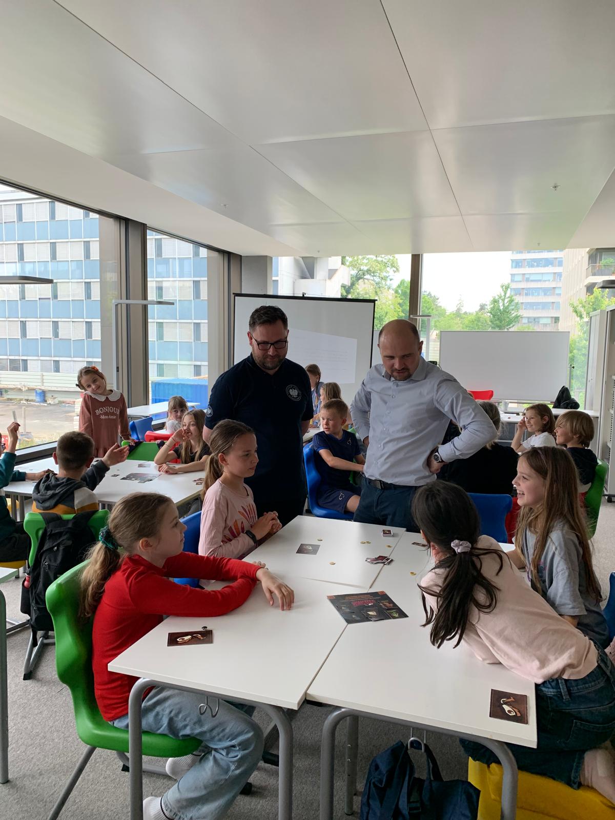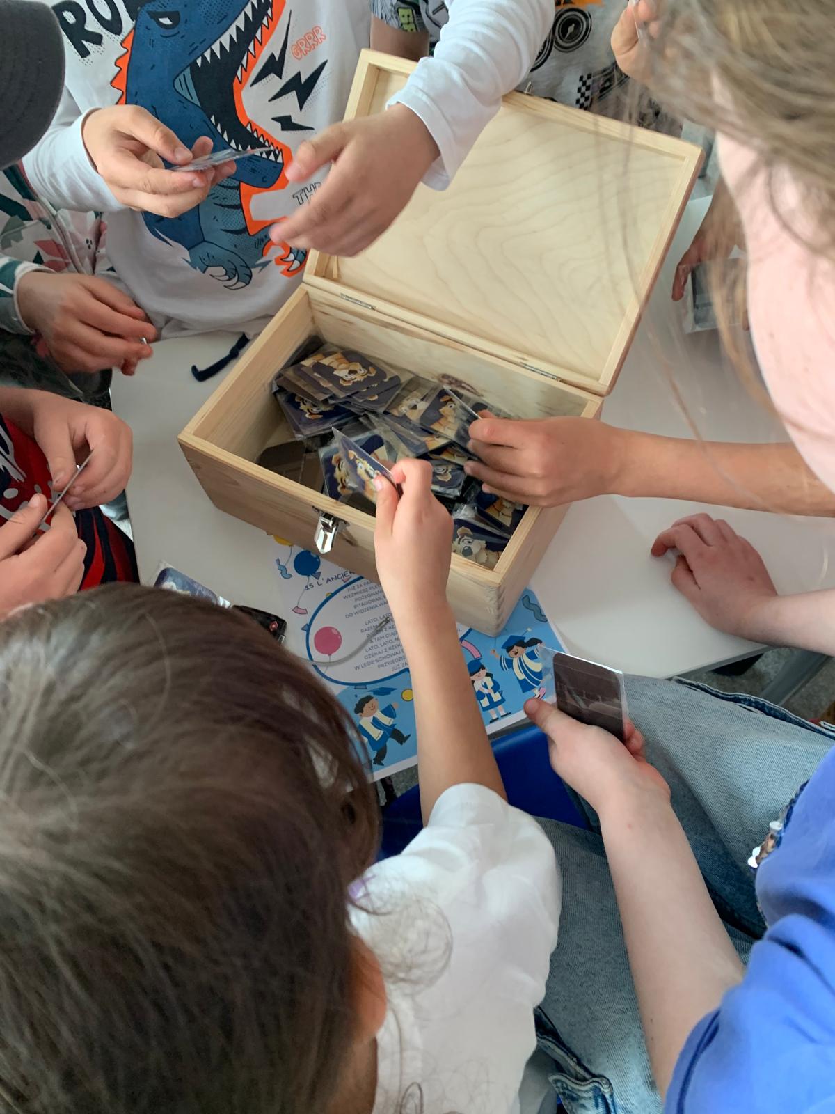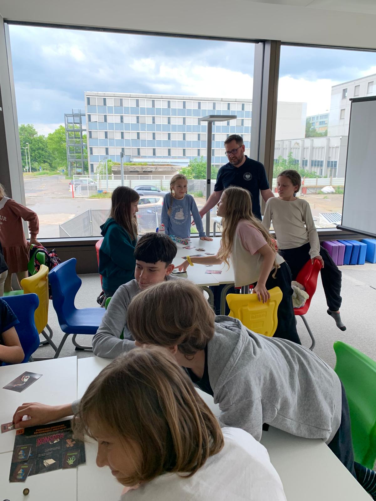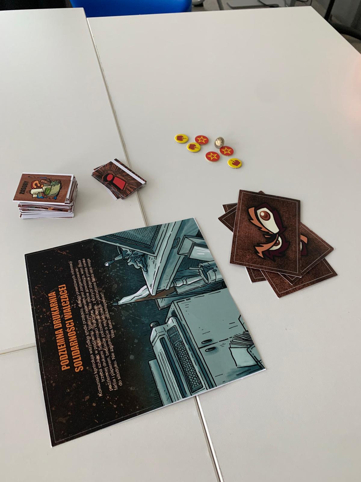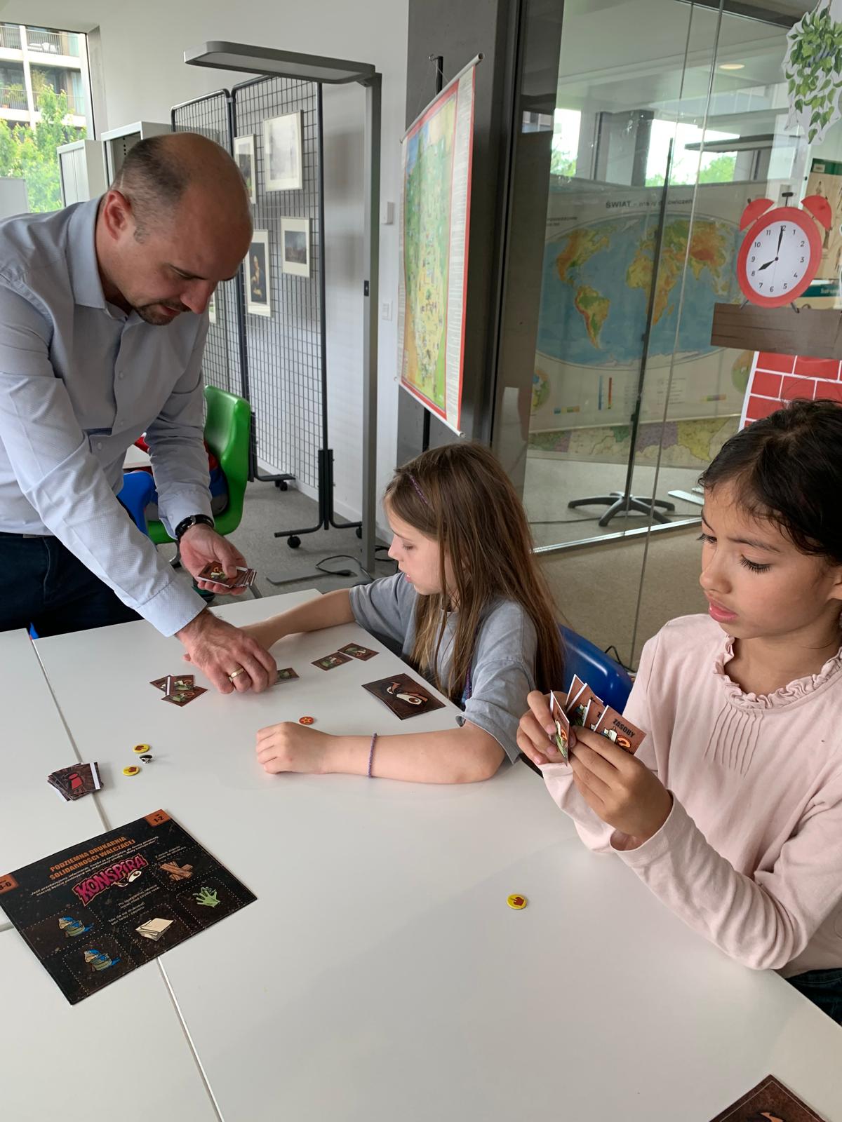 Następnie starsi uczniowie wzięli udział w karcianej grze edukacyjnej o charakterze konspiracyjnym, która w formie zabawy przybliżyła im realia życia w czasach PRL. Zajęcia były pełne emocji, śmiechu i refleksji — uczniowie nie chcieli ich kończyć!
