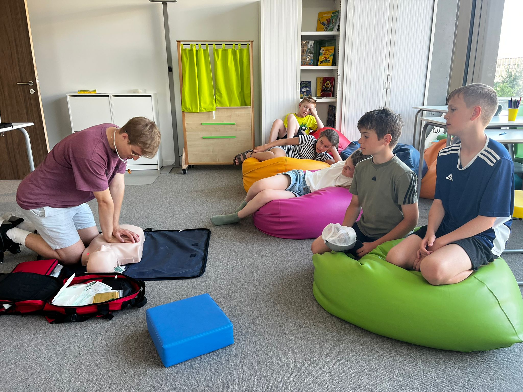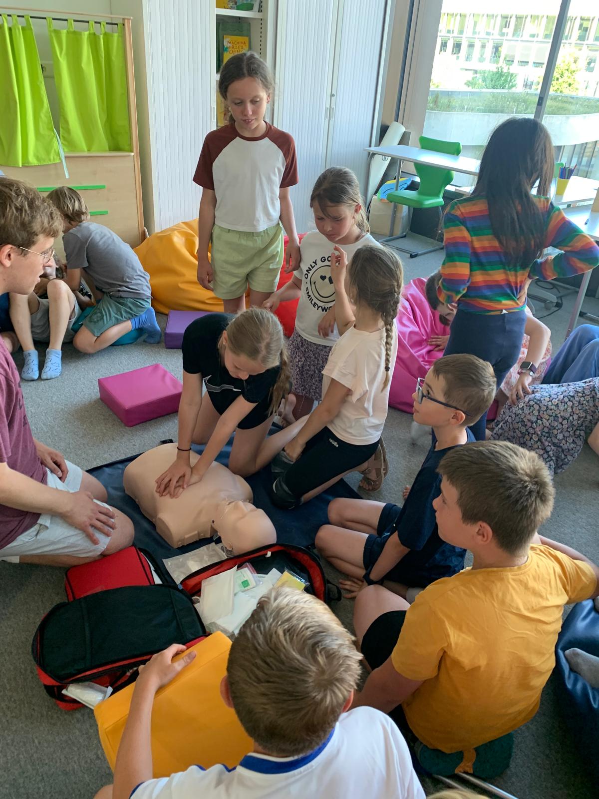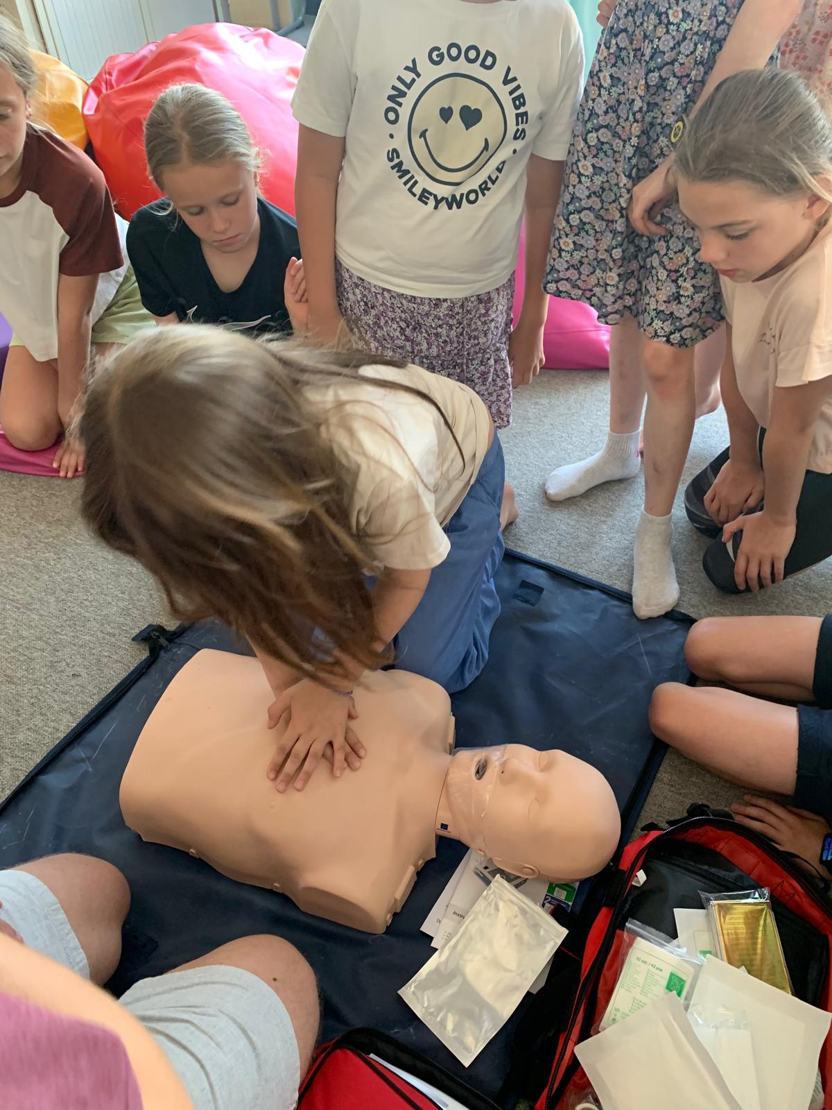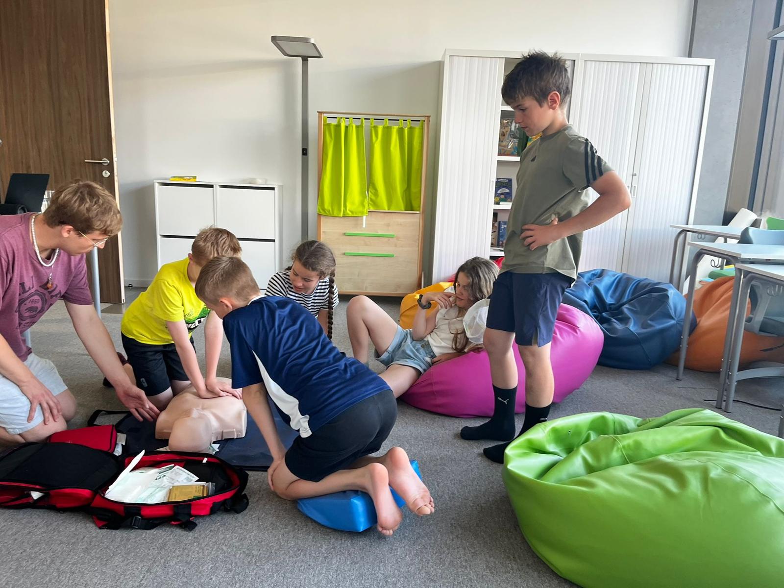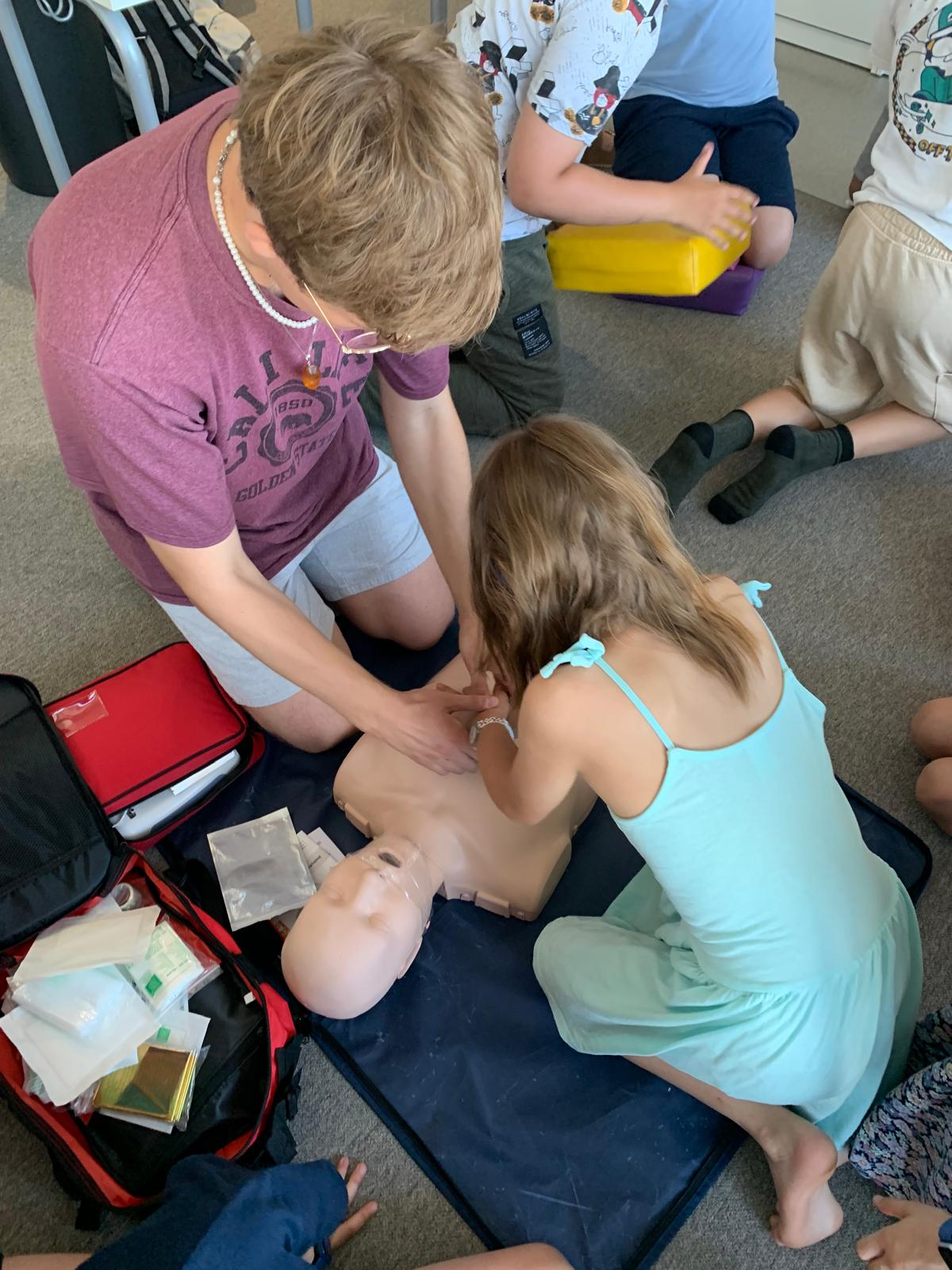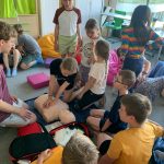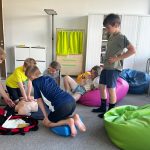 Uczniowie dowiedzieli się również, czym jest apteczka, co powinno się w niej znajdować oraz do czego służą poszczególne elementy. Podczas zajęć praktycznych uczyli się, jak prawidłowo wykonać opatrunek z użyciem gazików i bandaża.Dzieci ćwiczyły też resuscytację na fantomie i dowiedziały się, jak reagować w sytuacjach zagrożenia.