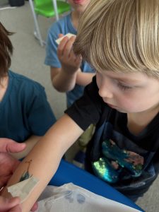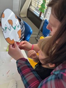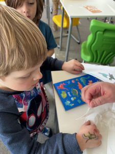 W naszym oddziale przedszkolnym świętowaliśmy wyjątkowy Dzień Dinozaura! Dzieci świetnie się bawiły, odkrywając fascynujący świat prehistorycznych gadów. Podczas zajęć „wykluwały się” dinozaury z jajek, a mali odkrywcy z ogromnym zaangażowaniem uczestniczyli w zabawach tematycznych. Nie zabrakło także kolorowych tatuaży oraz kreatywnych aktywności. Przedszkolaki dowiedziały się, czym żywiły się dinozaury, jak wyglądało ich życie i jakie były ich zwyczaje. To był dzień pełen radości, nauki i niezapomnianych wrażeń, prawdziwa dinozaurowa przygoda!